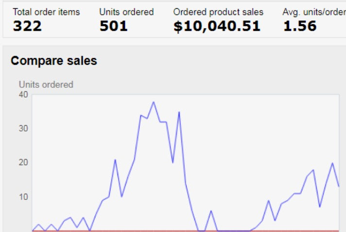 Produkt wystawiłem 3 dni temu. Listing zrobiłem i nie puściłem reklam. O dziwo, pierwszy dzień: 30 produktów sprzedanych, drugi dzień: 50 produktów, kolejny dzień: ponad 75 produktów sprzedanych… Bez recenzji, co mnie bardzo zdziwiło. Nie byłem gotowy na taką sprzedaż, ponieważ kupiłem 260 produktów. Dziś musiałem cenę podnieść, ale sprzedaż nie ustała i dalej się sprzedaje. :) Zaraz będę out of stock. :(