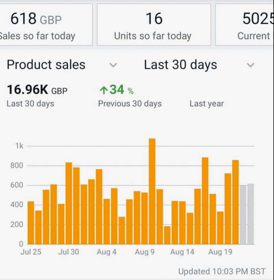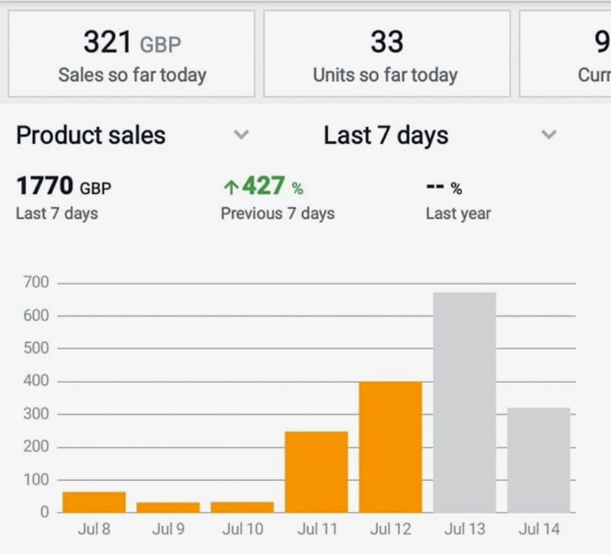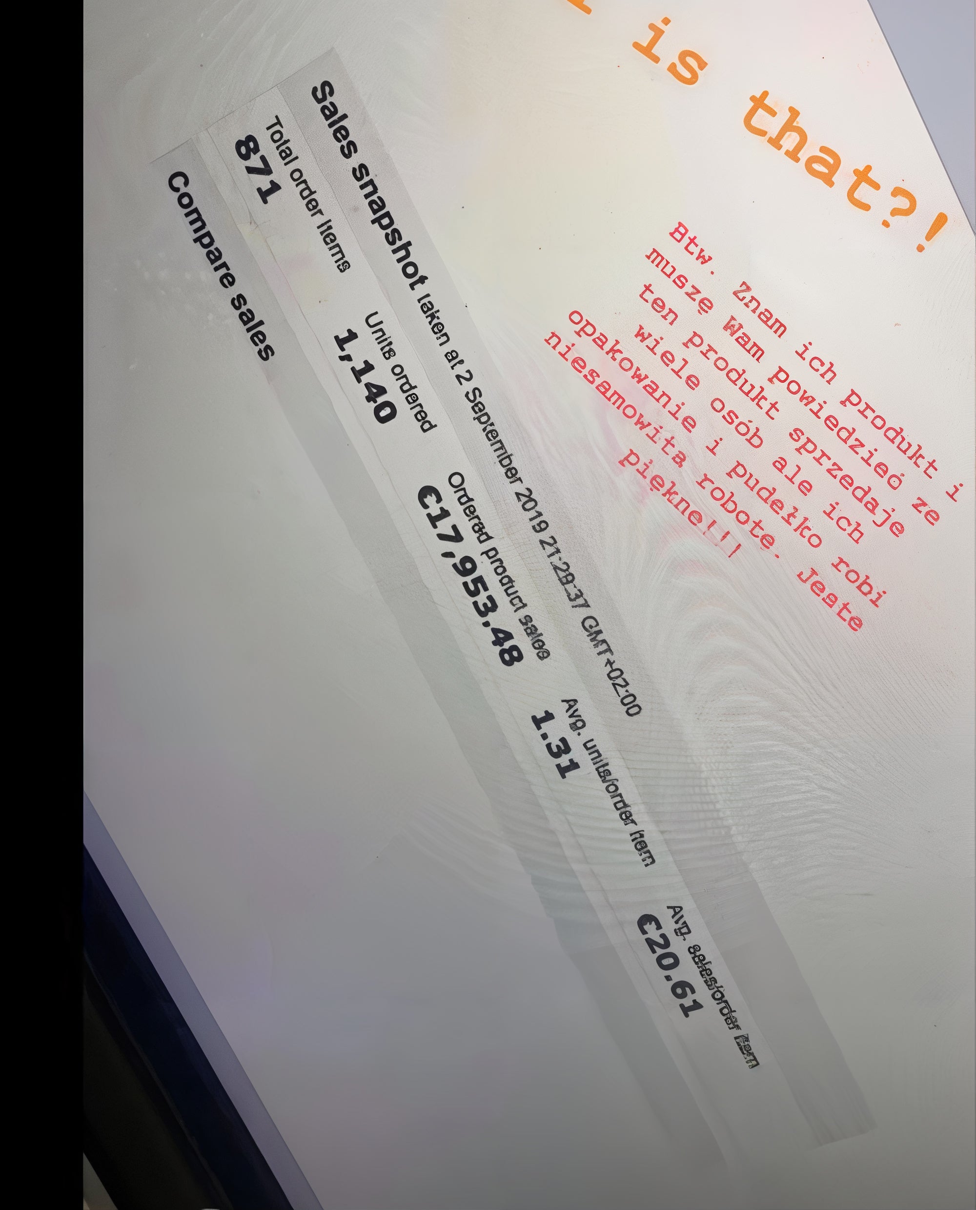 Nie mogę się doczekać Q4. Ciężka praca w końcu się opłaca. Plan na 2021 był milion złotych obrotu w polskiej walucie (z obecnym mocnym funtem jest łatwiej). Jeżeli Q4 dopisze, Amazon + eBay 1.5 miliona jest w zasięgu.